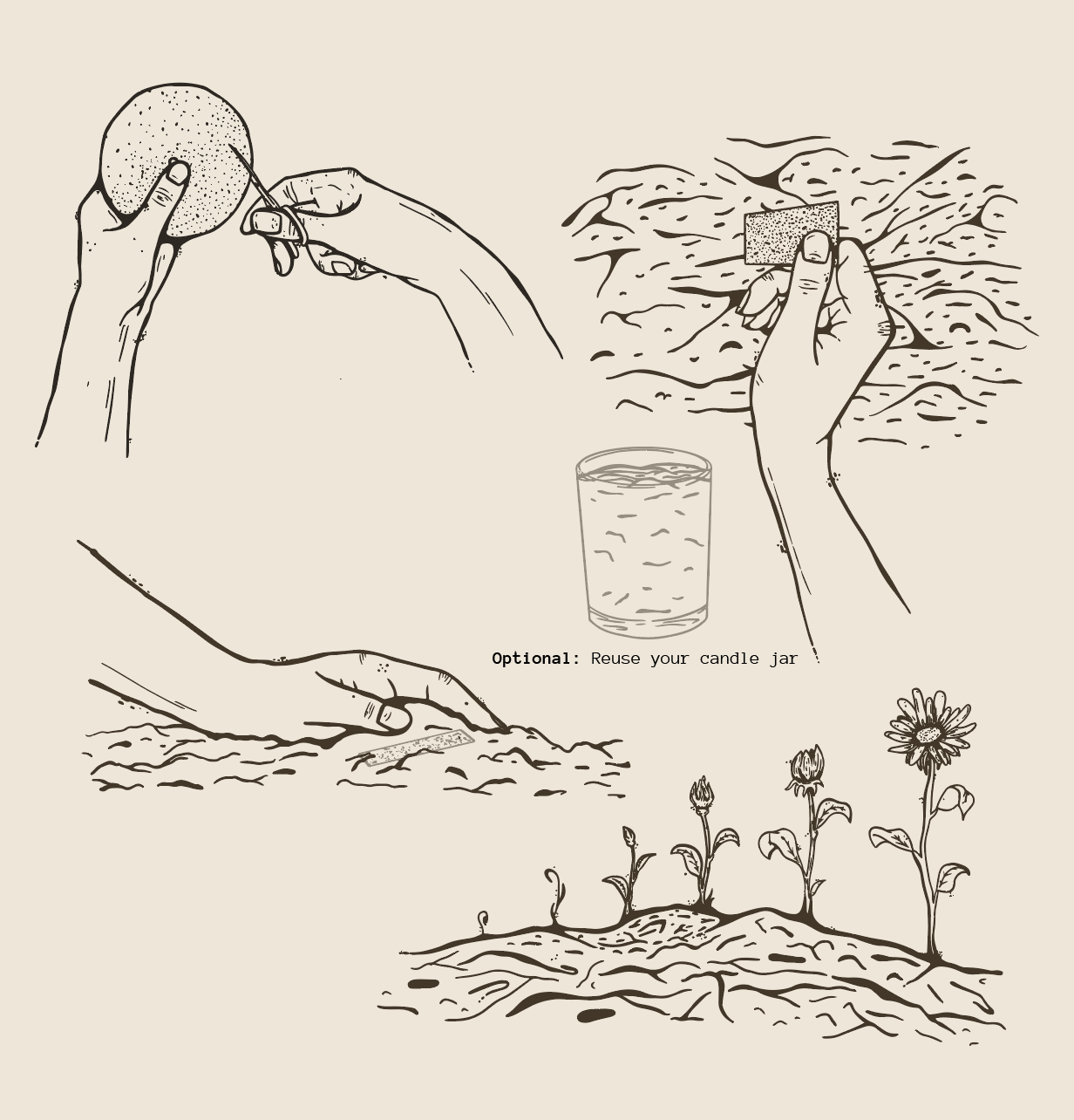 Once you’ve burned through your candle, pop the wildflower topper in some soil, give it a little love, and watch something beautiful grow. Bonus points if you turn the jar into a vase. Or a cocktail glass. We don’t judge.