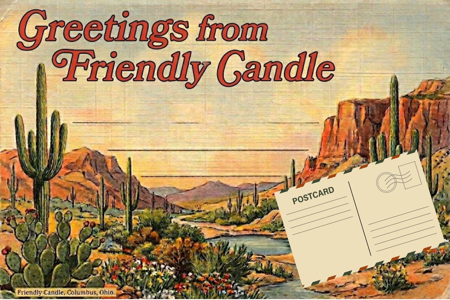 Every Friendly Candle order includes a stamped postcard already stamped and ready to send.